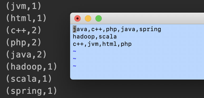 這里直接讀取文件中的數(shù)據(jù),經(jīng)過程序流程分析出每個(gè)單詞出現(xiàn)的次數(shù)。