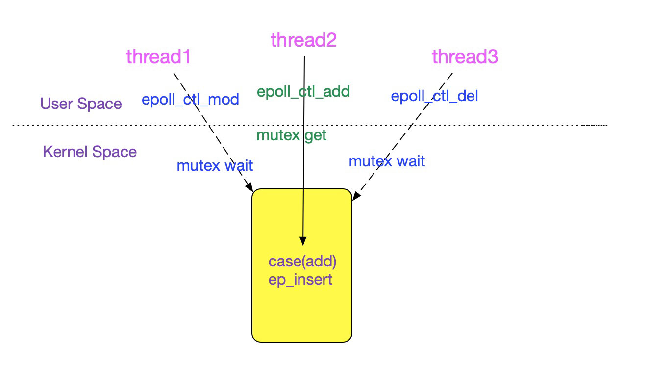 借助于spin_lock(自旋鎖)和mutex(互斥鎖),epoll_ctl調(diào)用可以在多個(gè)KSE(內(nèi)核調(diào)度實(shí)體,即進(jìn)程/線程)中并發(fā)執(zhí)行。