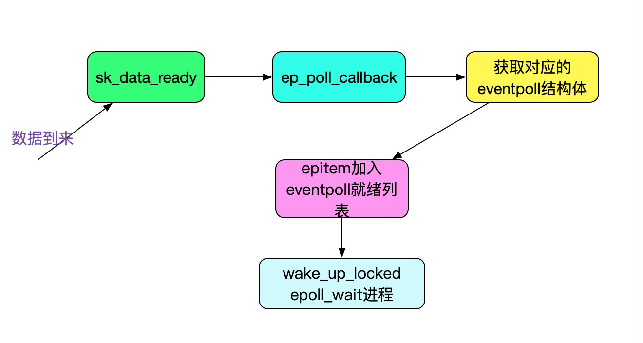 經(jīng)過(guò)上述章節(jié)的詳述之后,我們終于可以闡述,tcp在數(shù)據(jù)到來(lái)時(shí)是怎么加入到epoll的就緒隊(duì)列的了。