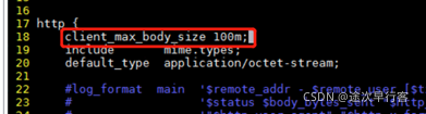 client_max_body_size 100m;、