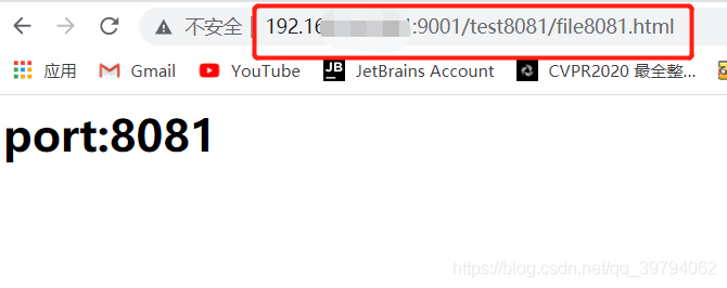 配置好反向代理之后,訪問/test8081/路徑下的file8081頁面,Nginx會反向代理訪問8081端口的Tomcat服務(wù)器