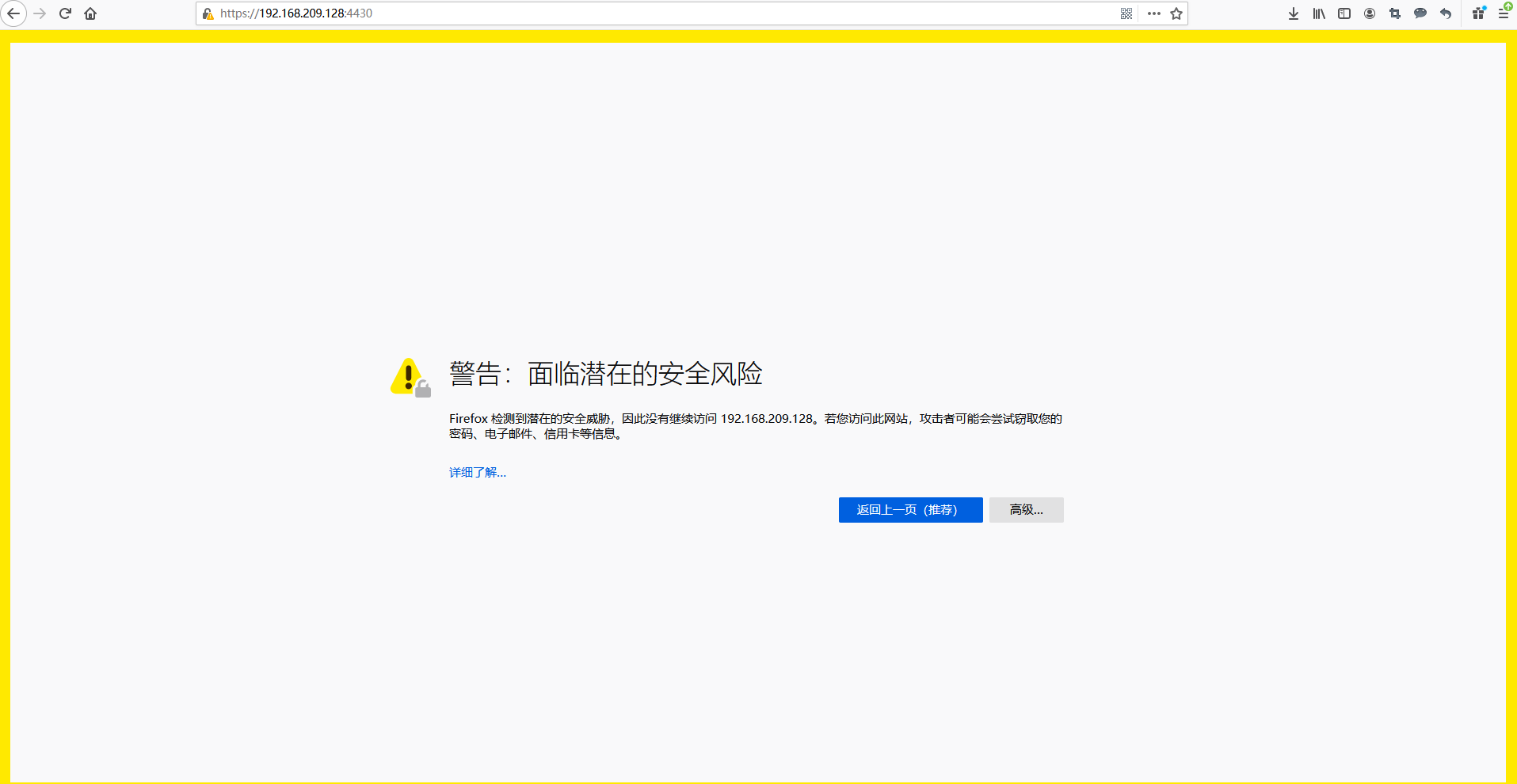 接著使用 nginx -t 驗證和使用 nginx -s reload 重新加載后,使用瀏覽器訪問4430可訪問到了,只不過會提示存在風(fēng)險,畢竟證書是自己制作的,如下圖: