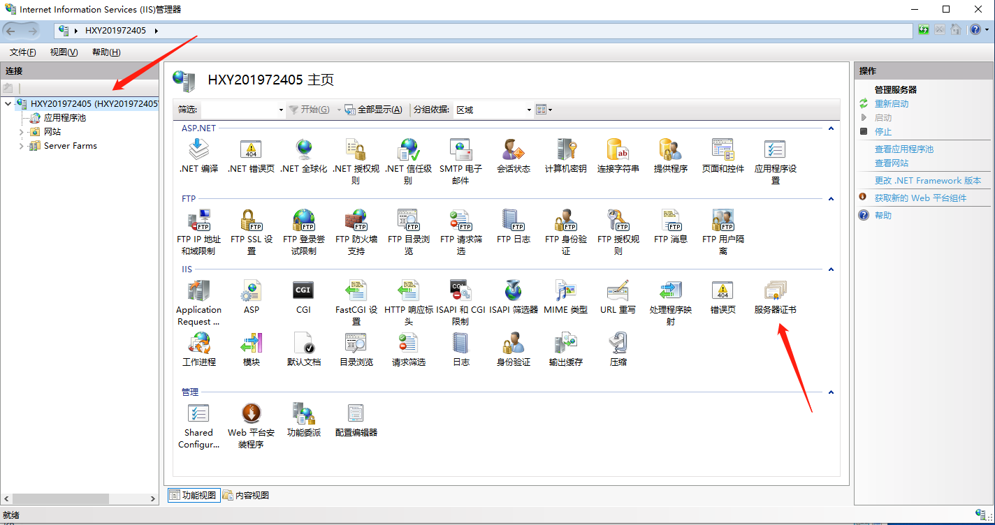 打開IIS,在主頁中點擊【服務(wù)器證書】