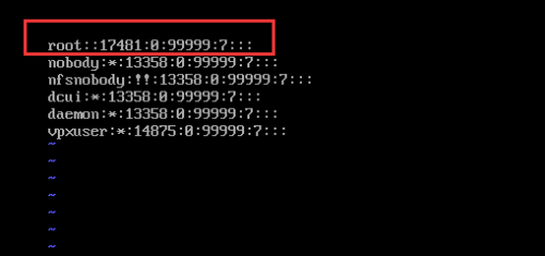 vi etc/shadow (記住,在救援模式下只能使用vi,并且不要按a或者i鍵進(jìn)入編輯模式,直接使用x對(duì)文字進(jìn)行刪除)