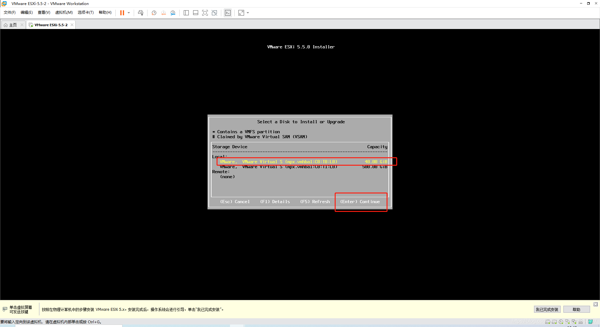 CD/DVD 連接到本地VMware-Esxi-5.5.0-Installer-.x86_64.iso鏡像。