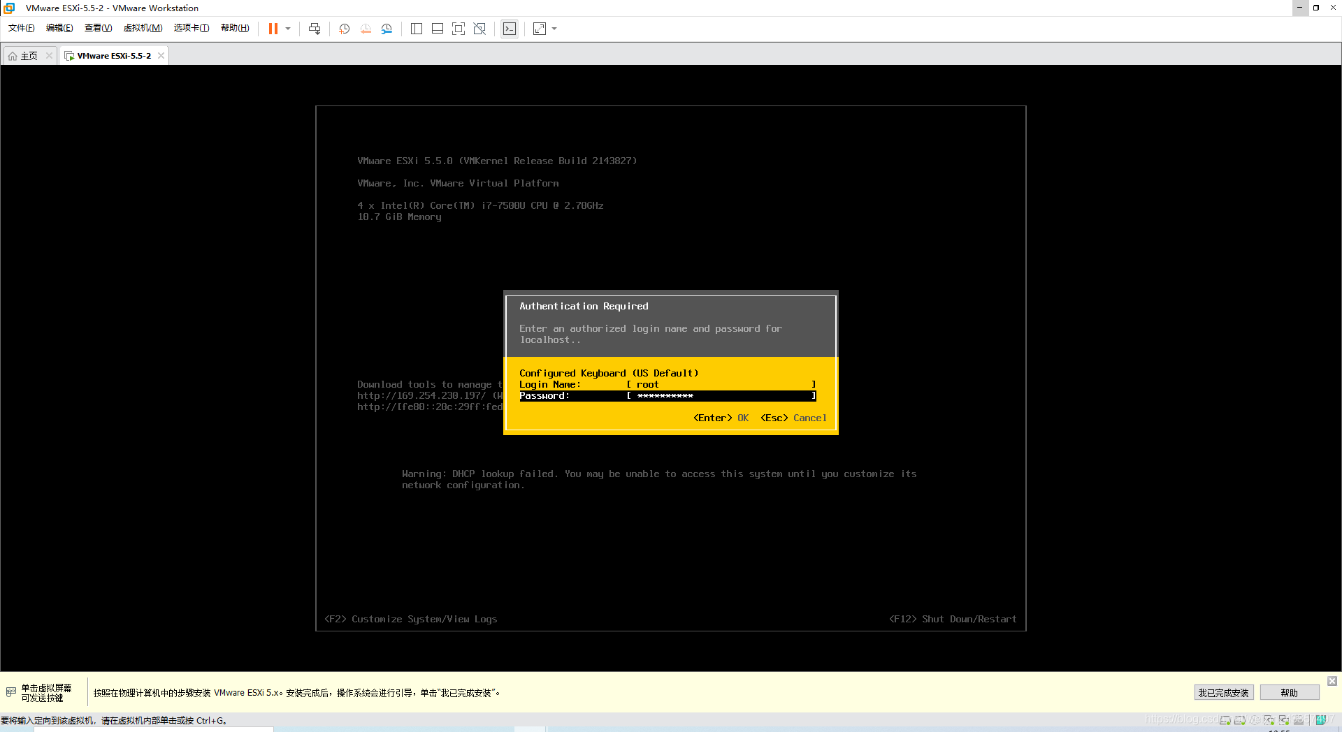 進入ESXi界面按F2輸入密碼進入后臺配置