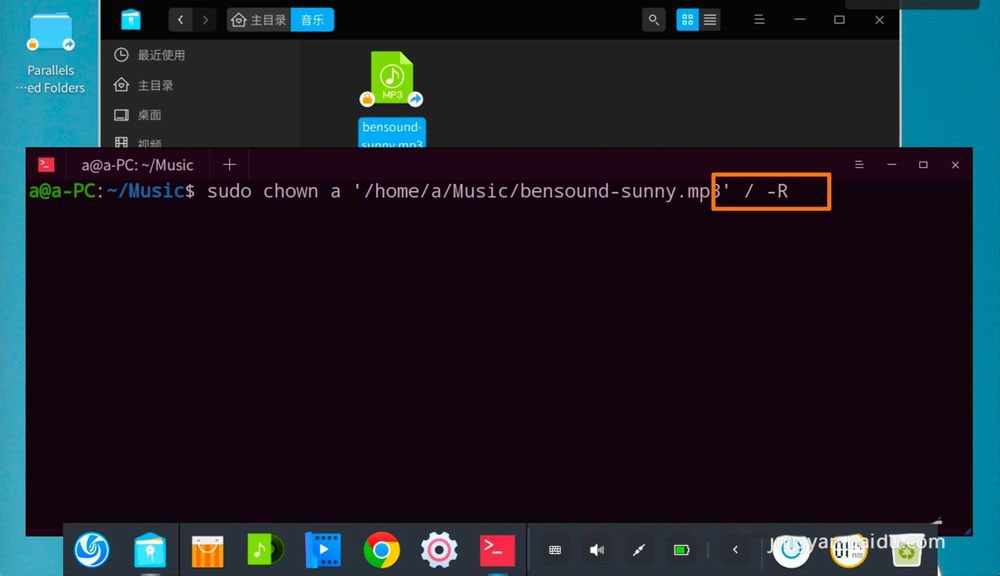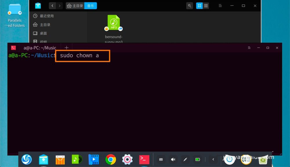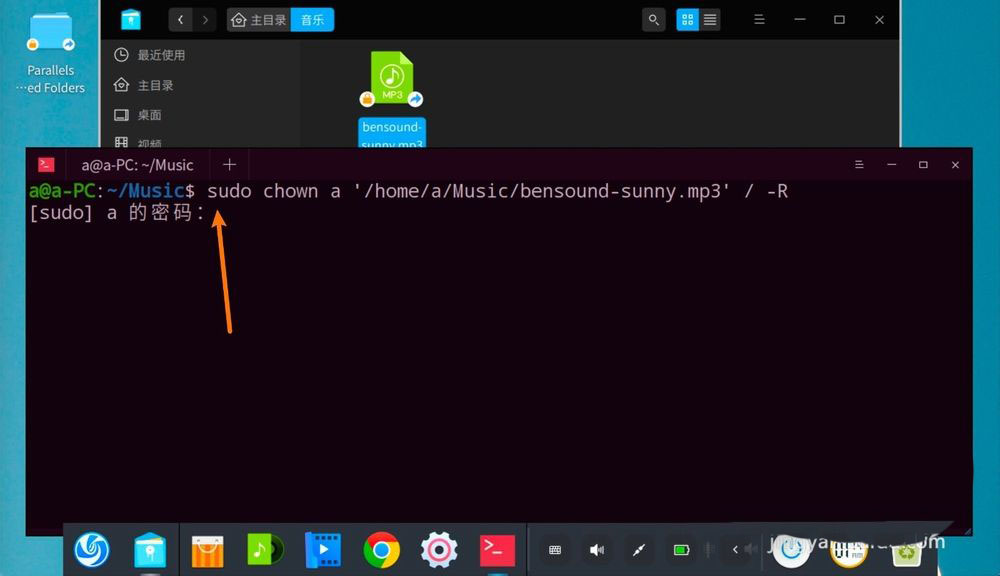 在終端輸入刪除關閉鎖頭命令:【suod chown a】,這里a是你創(chuàng)建的用戶名,當前系統(tǒng)的用戶。