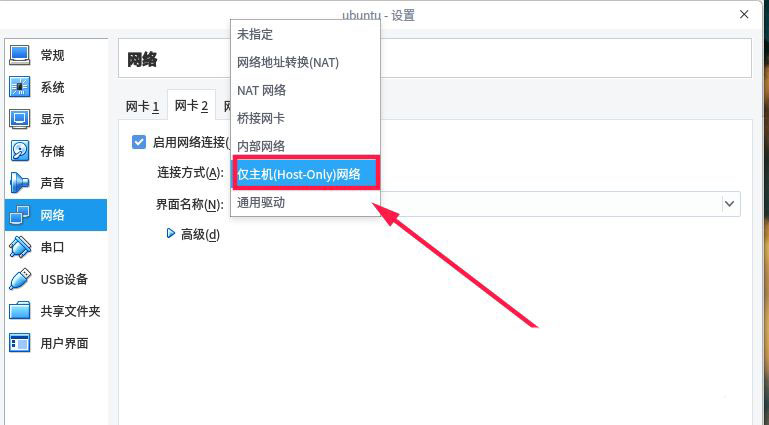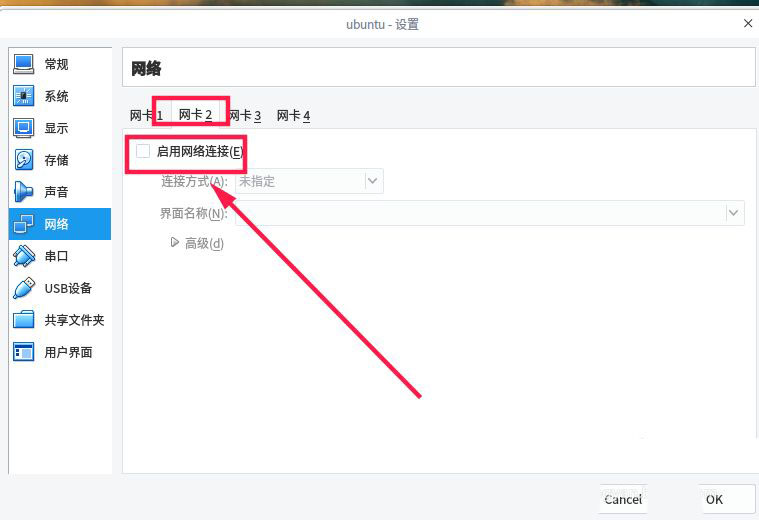 在網(wǎng)絡(luò)界面點(diǎn)擊“網(wǎng)卡2”,如下圖所示,勾選“啟用網(wǎng)絡(luò)連接”。