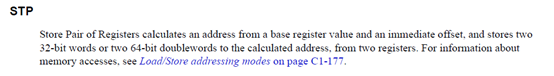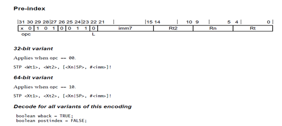 將Xt1和Xt2存入Xn|SP對應的地址內存中,然后,將Xn|SP的地址變更為Xn|SP + imm偏移量的新地址