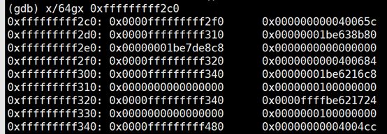 可以看到,f3函數開辟的??臻g為48字節(jié),因此,倒推frame2的棧頂為當前的sp + 48字節(jié):0xfffffffff2c0
