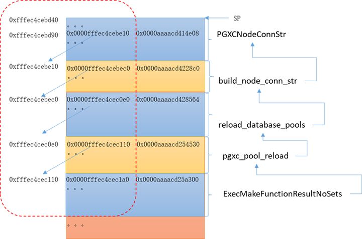 因此就找到了下一級的frame對應的棧頂和上一級的LR返回指令,反解,可以得到函數build_node_conn_str