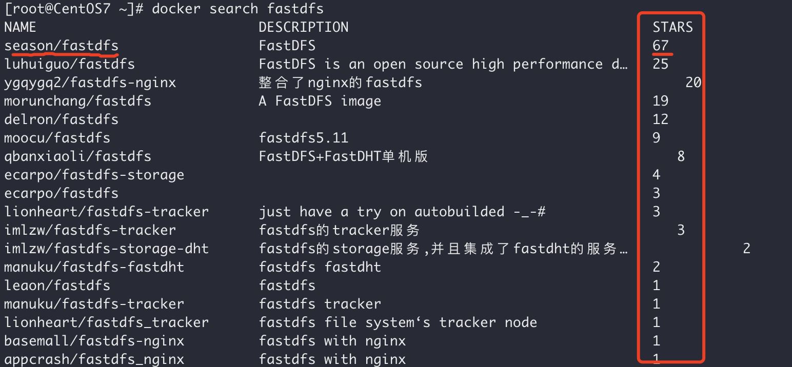 補(bǔ)充: 其實(shí)看這些鏡像的描述也能看出一些區(qū)別來(lái)的,比如 ygqygq2/fastdfs-nginx,該鏡像是整合了 Nginx 的 fastdfs,那么新的問(wèn)題來(lái)了,為什么要整合 Nginx?因?yàn)閷?duì)于 fastdfs 來(lái)說(shuō),安裝后只能在本機(jī)訪問(wèn)… 我上傳文件肯定是為了能夠訪問(wèn)的呀,所以為了提供 web 訪問(wèn),那么就需要集成 Nginx 了,但是比如就是想自己?jiǎn)为?dú)搞 Nginx… 那么肯定就不會(huì)選了嘛,season/fastdfs 鏡像相對(duì)純凈些,本文就是基于 season/fastdfs 鏡像的,后面也附帶配置 Nginx…