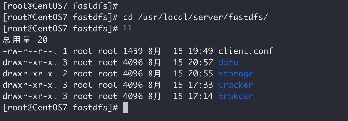 mkdir -p /usr/local/server/fastdfs/tracker/data mkdir -p /usr/local/server/fastdfs/storage/data mkdir -p /usr/local/server/fastdfs/storage/path