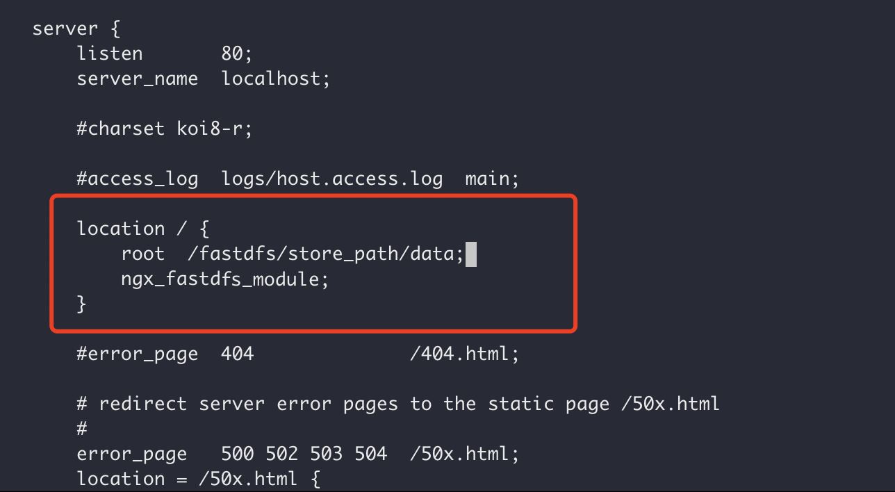 vi /usr/local/server/fastdfs/nginx/nginx.conf