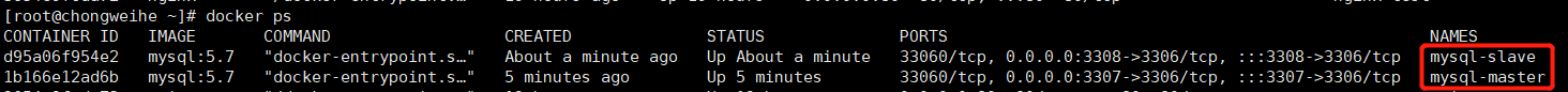 Master對外映射的端口號是3307,Slave對外映射的端口號是3308
