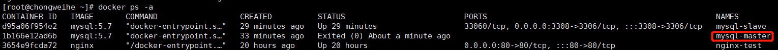 docker exec -it 1b166e12ad6b /bin/bash #1b166e12ad6b是容器id docker exec -it mysql-master /bin/bash #mysql-master是容器名稱