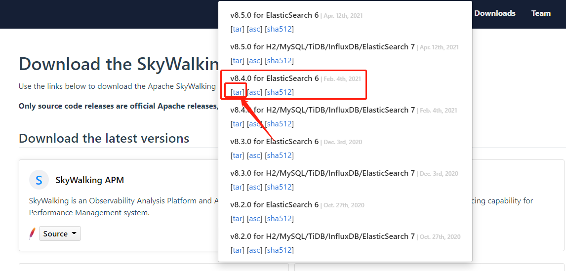 skywalking 官網(wǎng)下載地址:http://skywalking.apache.org/downloads/