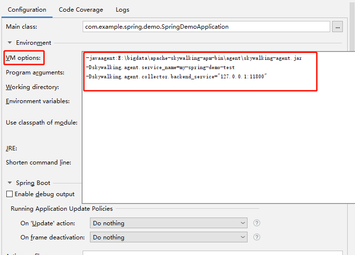 java -javaagent:<skywalking-agent-path> -jar spring-boot-demo