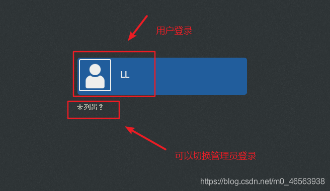 我們可以看見未列出這三個(gè)字,我們點(diǎn)擊這個(gè)可以選擇用管理員身份登錄。