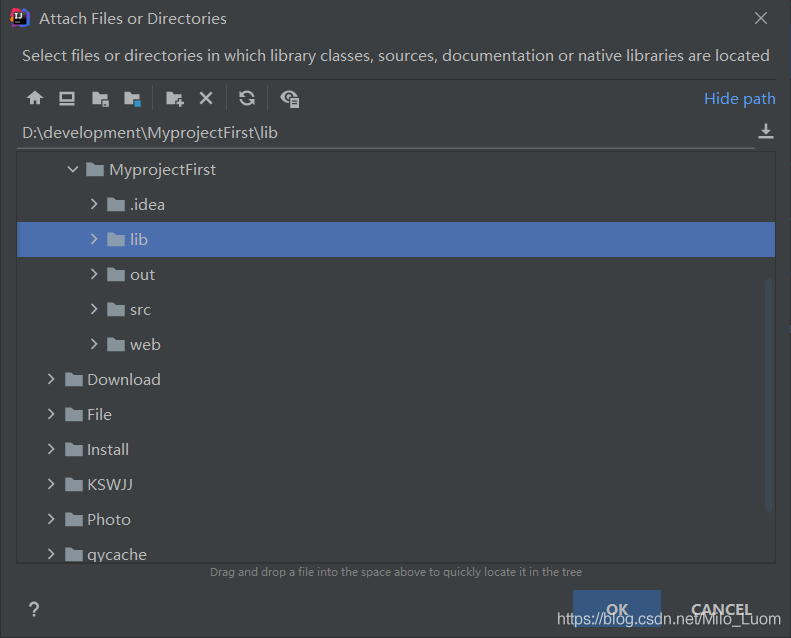 4、在打開的窗口中把路徑選擇到剛剛創(chuàng)建的lib文件夾,然后點擊OK