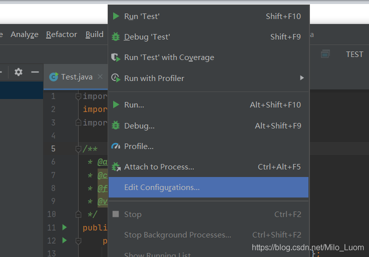 7、然后我們正式開始配置tomcat容器。首先打開菜單Run -> Edit Configurations…