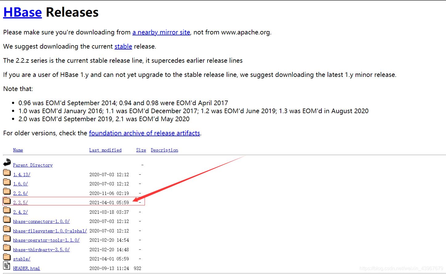 Hbase 2.3.5安裝地址: Hbase 2.3.5清華鏡像源地址