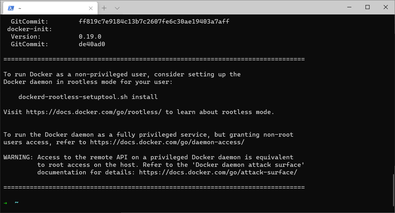 在上圖中可以看到docker的版本信息為20.10.3,這是目前的最新版本,已經確認安裝成功無誤。