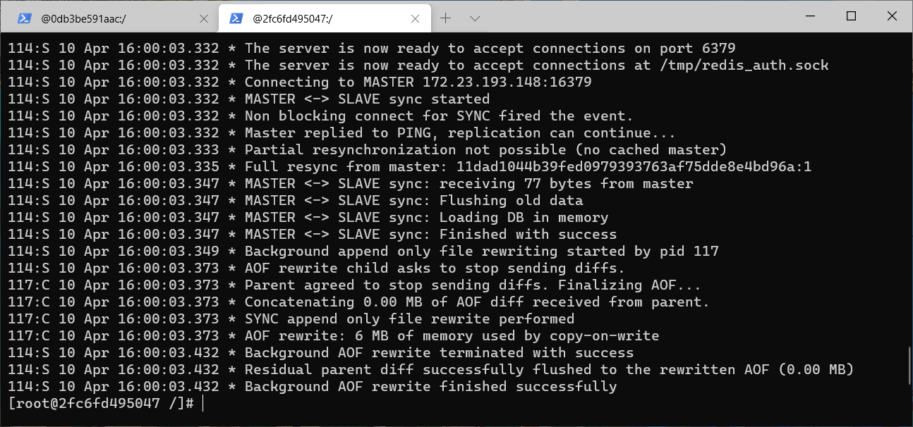 在上方的命令中,因為在同一臺主機,為了不和主庫端口產生沖突,我將主機端口26379,啟動完成之后就可以進入從庫容器,運行的命令如下所示