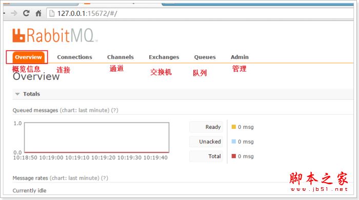 connections:無論生產者還是消費者,都需要與RabbitMQ建立連接后才可以完成消息的生產和消費,在這里可以查看連接情況channels:通道,建立連接后,會形成通道,消息的投遞獲取依賴通道。Exchanges:交換機,用來實現消息的路由Queues:隊列,即消息隊列,消息存放在隊列中,等待消費,消費后被移除隊列。