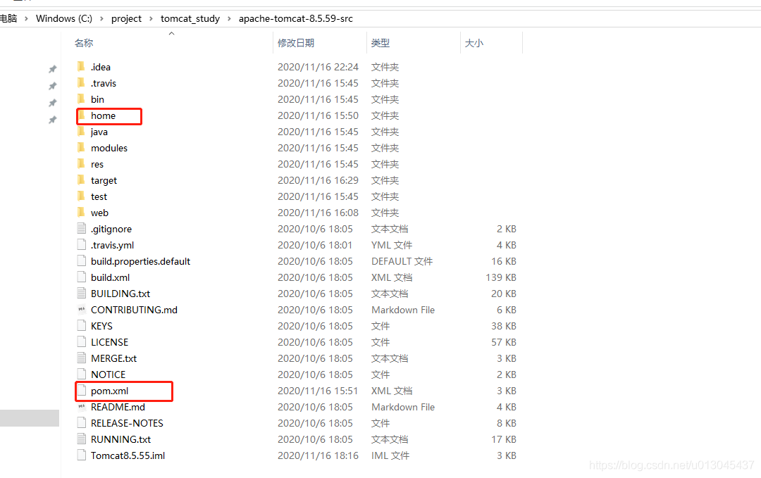 在tomcat的源碼文件夾下面創(chuàng)建home目錄,把源碼中的conf目錄和webapps目錄剪切到其中(其他新建的目錄如logs等),另外新建maven的pom.xml文件。