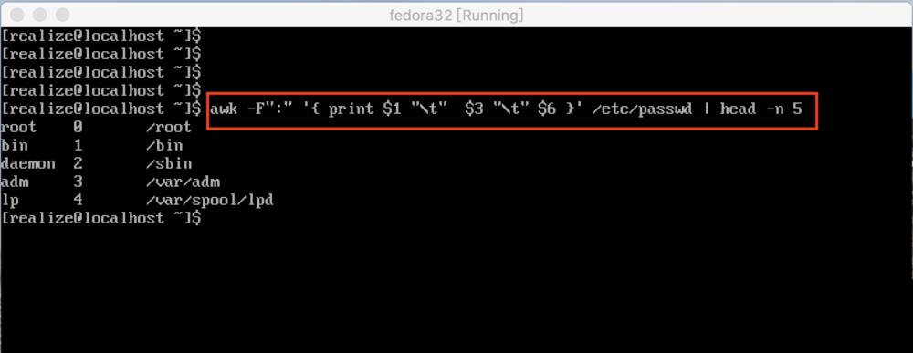 5、awk還可以將每一行最后的一個(gè)字段顯示出來