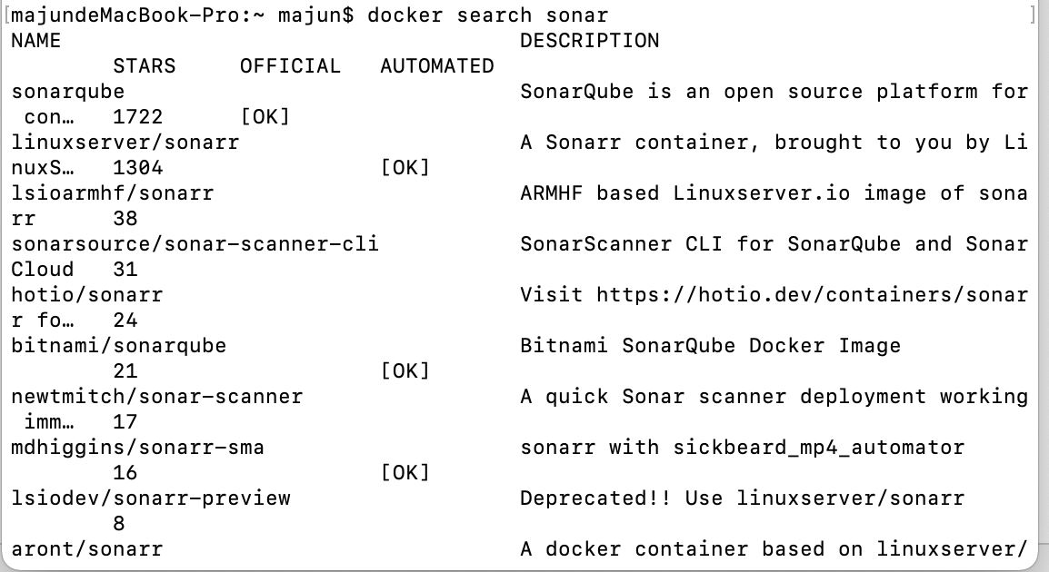 下載完成后 執(zhí)行docker images 查看已經(jīng)下載的鏡像文件。已經(jīng)有了sonarqube。