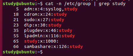4、這里一目了然study這個(gè)用戶的附組權(quán)限。