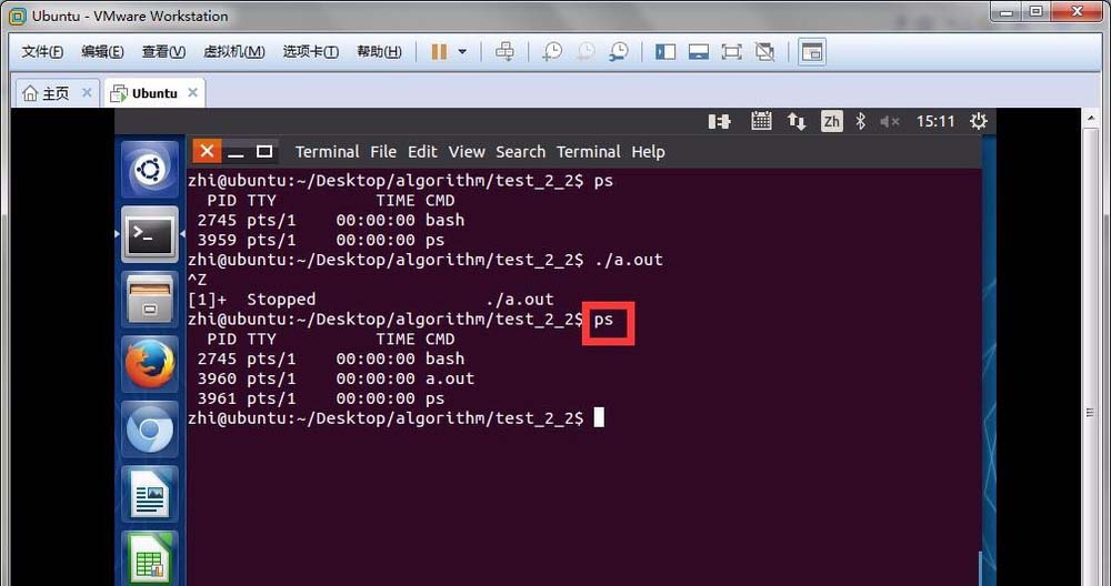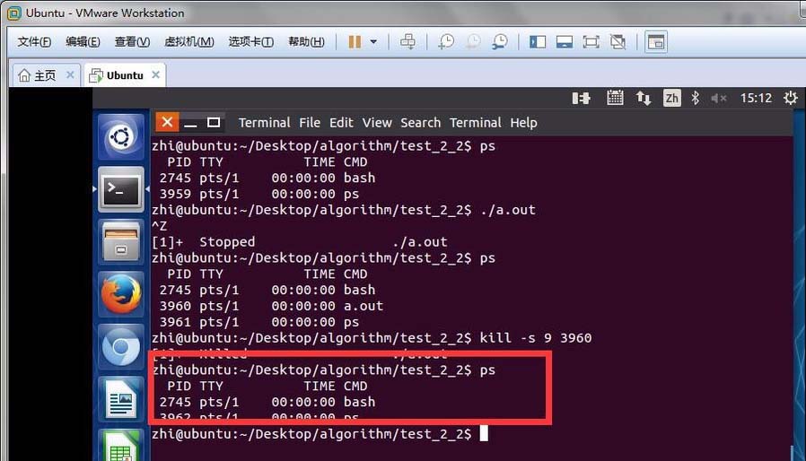 3、目前,該終端下有三個進程: bash、a.out、ps