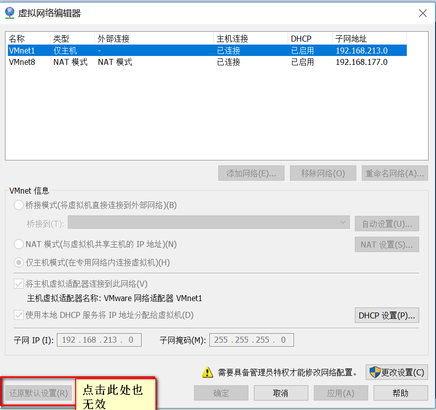 1.5 還原默認(rèn)設(shè)置,重新安裝虛擬網(wǎng)卡也無效