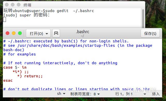 3、我們會(huì)打開(kāi)這樣一個(gè)bashrc文件窗口。