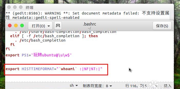 4、在最后我們加入export HISTTIMEFORMAT=" %F %T "或者也可以使用export HISTTIMEFORMAT=”[%Y.%m.%d %H:%M:%S] ”