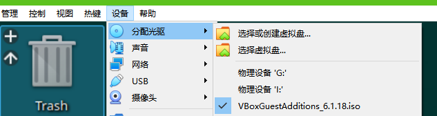 選擇設備——》選擇虛擬盤——》選擇文件VBoxGuestAddtions.iso