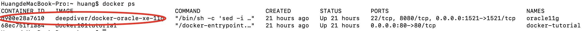 sudo docker run -d -p 1521:1521 --name oracle11g deepdiver/docker-oracle-xe-11g
