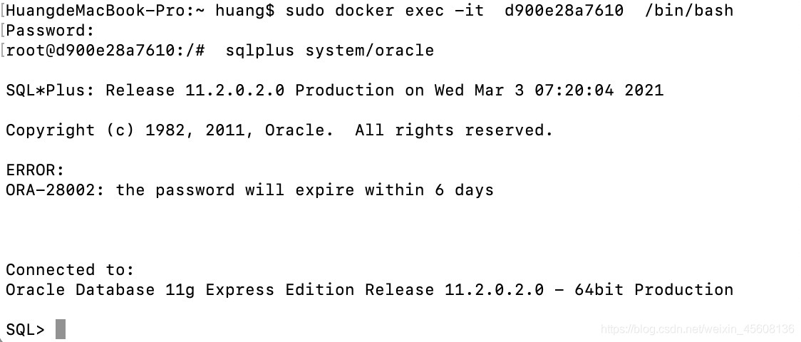 到此這篇關(guān)于如何在mac上用docker對Oracle進(jìn)行部署使用的文章就介紹到這了,更多相關(guān)docker對Oracle部署使用內(nèi)容請搜索本站以前的文章或繼續(xù)瀏覽下面的相關(guān)文章希望大家以后多多支持本站!