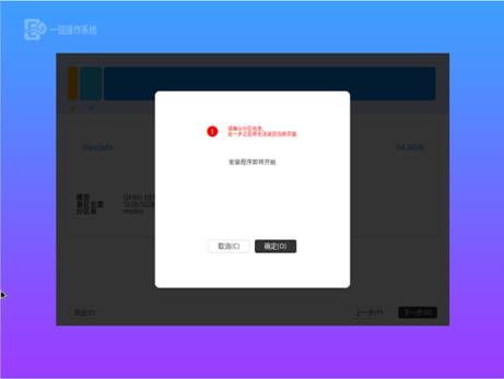 分區(qū)之后,點(diǎn)擊確認(rèn),開(kāi)始安裝。