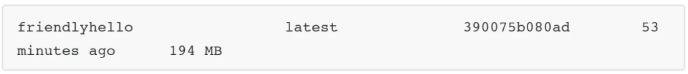 為舉例需要,我參考 Docker 官方文檔創(chuàng)建了一個(gè)名為 friendlyhello 的 Docker 鏡像,該鏡像大小為 194MB(如下所示):