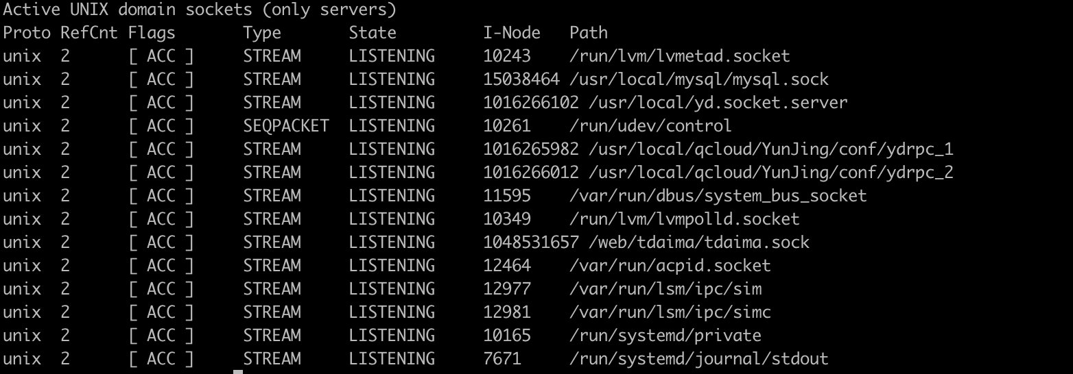 - -l或–listening:顯示監(jiān)控中的服務器的Socket;