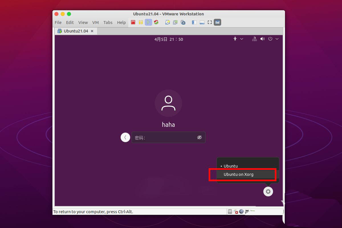 進入ubuntu登錄窗口的時候,我們點擊用戶名,然后在右下角選擇 ubuntu on Xorg這個選項。