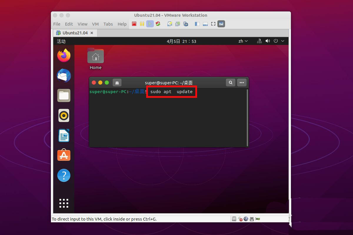 新安裝的ubuntu21.04我們需要先sudo apt update 更新下我們的資源環(huán)境,不然好多工具都提示找不到。