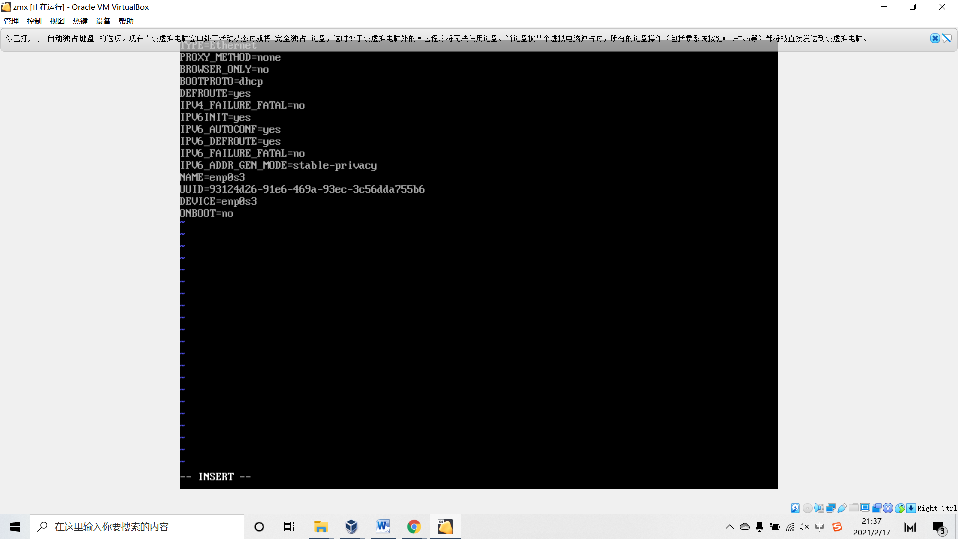 只要把ONBOOT=no,修改為ONBOOT=yes就好。vim編輯,按i可以進(jìn)入insert模式,按方向鍵移動(dòng)光標(biāo),修改完后,esc退出insert模式,:wq保存并退出。