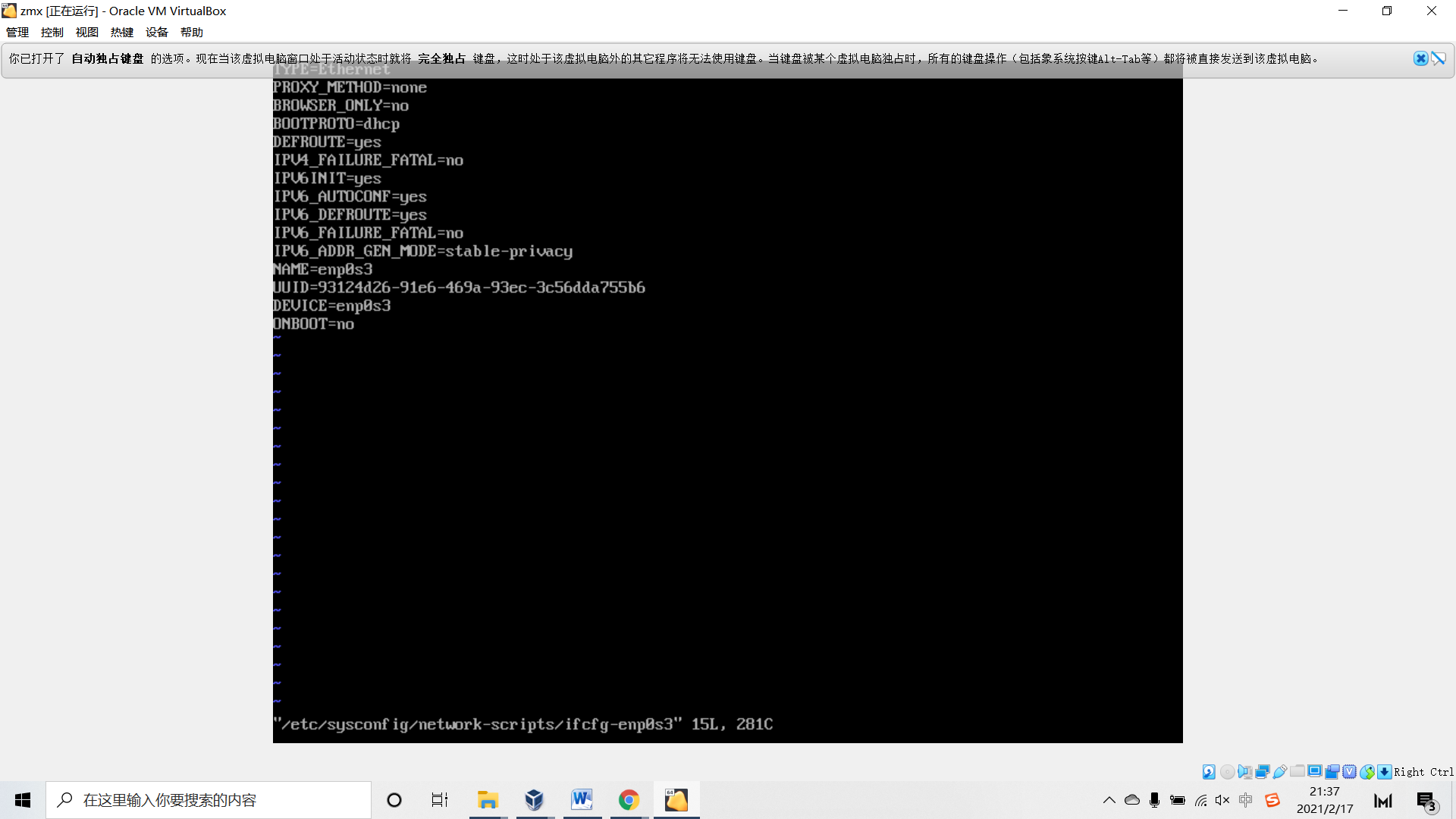 vi /etc/sysconfig/network-scripts/ifcfg-enp0s3