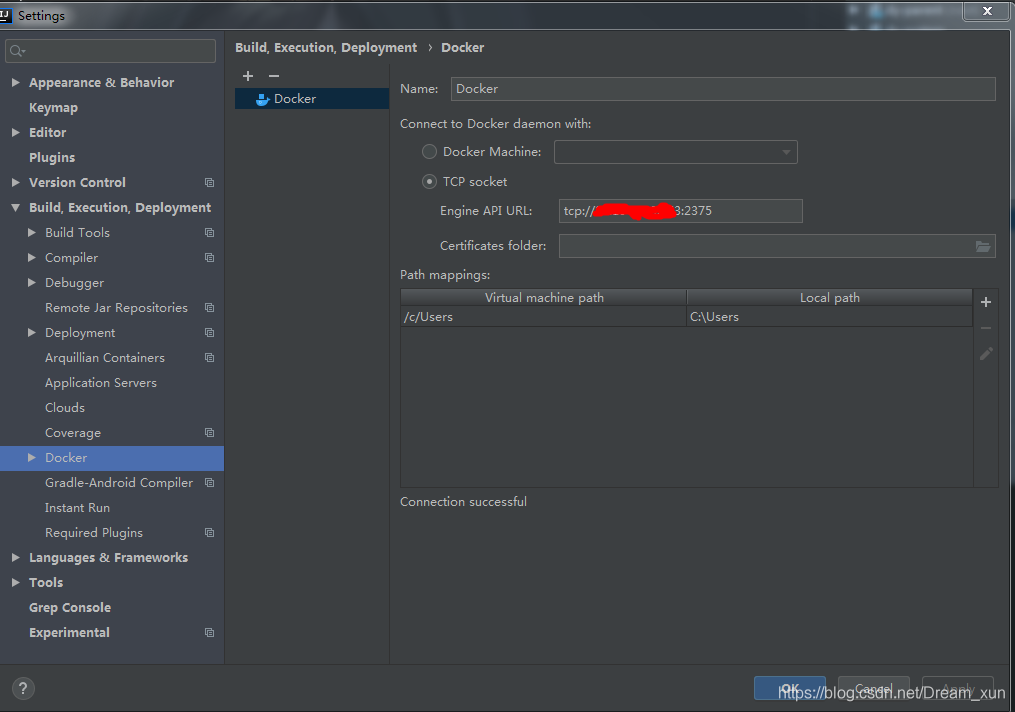 File–>Settings–>Build,Execution,Deployment–>Docker–>進(jìn)行如下配置: