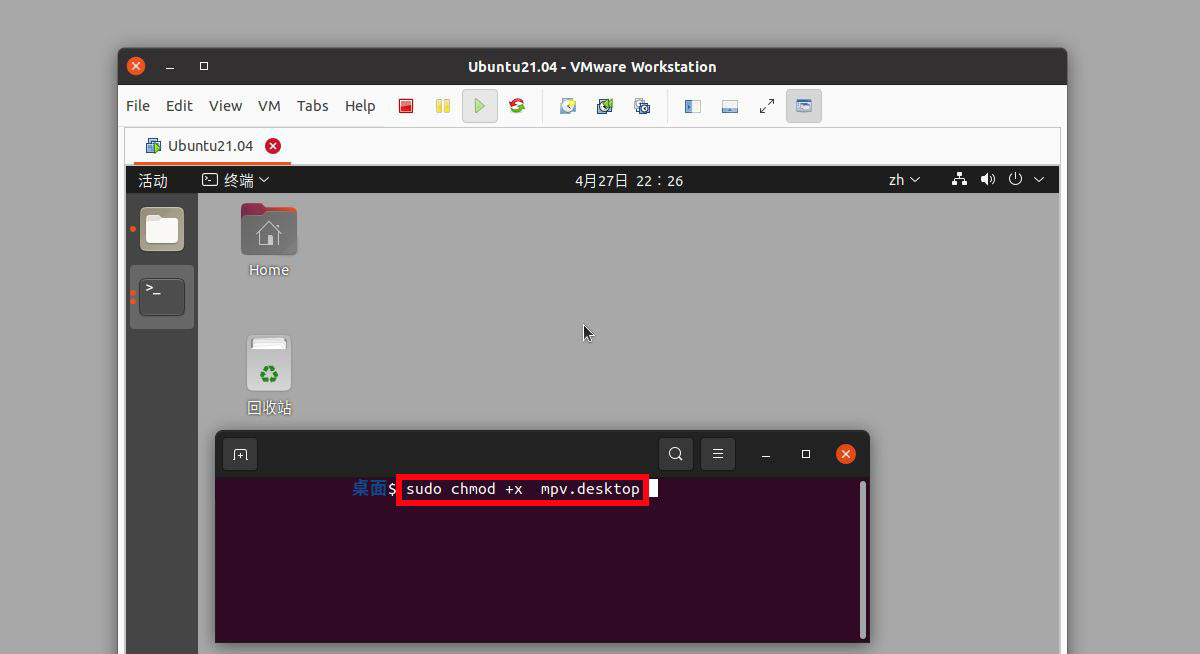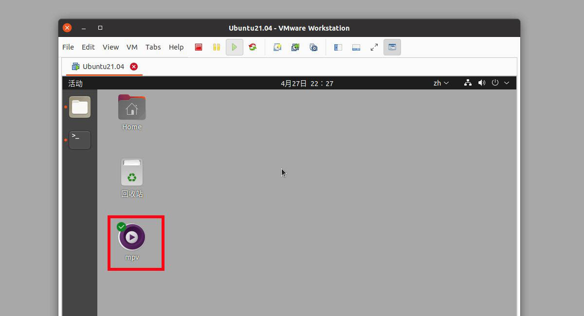 在終端我們執(zhí)行chmod +x mpv文件,這樣我們發(fā)現(xiàn)圖標(biāo)就變成軟件的圖標(biāo)了,并且可以啟動了。
