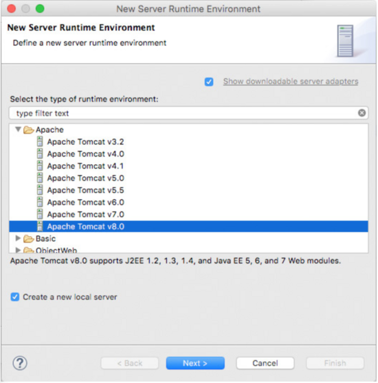 在下一個(gè)屏幕上選擇Apache Tomcat8。這將部署你的應(yīng)用程序并在瀏覽器窗口中為你打開它。